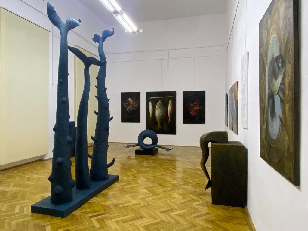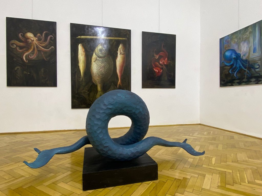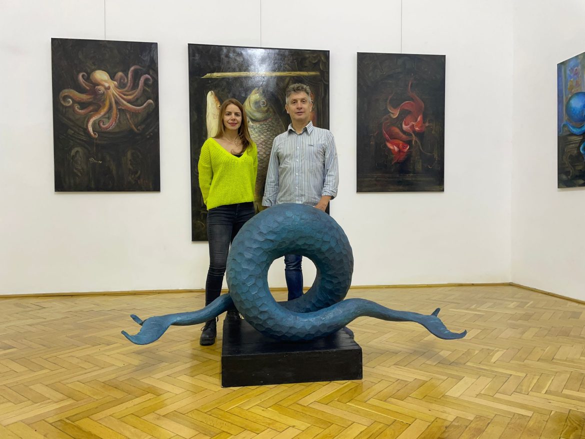 Expoziția „Abbysus” reunește două perspective artistice complementare: pictura introspectivă a Oanei Munteanu și sculptura mitologică a lui Eugen Varga – într-un dialog sensibil despre subconștient, identitate și transformare.